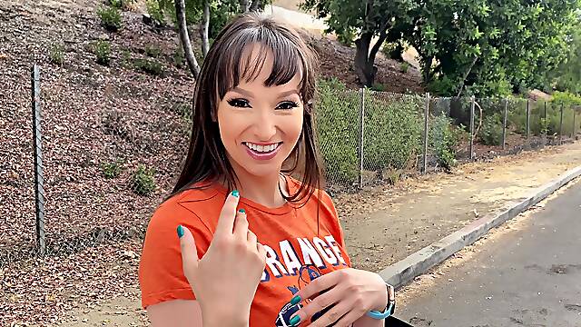 Sweet brunette Lady Gang gives a nice blowjob and rides his dick