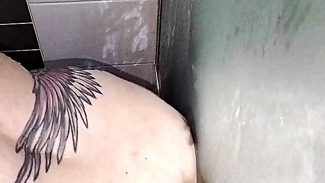 sexywifedd fucks her big ass in the shower with her tentacle dildo before I fuck her ass