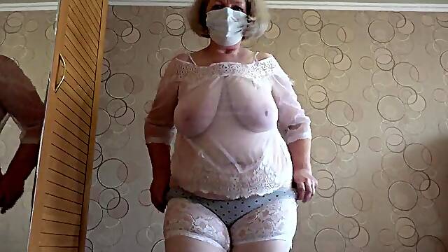 Trying on recent white pants. A aged big beautiful woman shakes her large booty. PAWG.