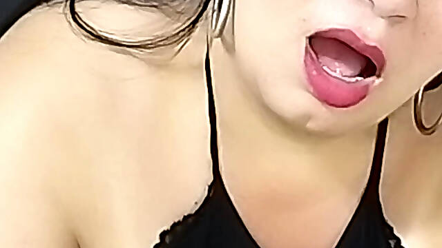 Filling the mouth of a perverted grandmother with milk, who sucks her deliciously
