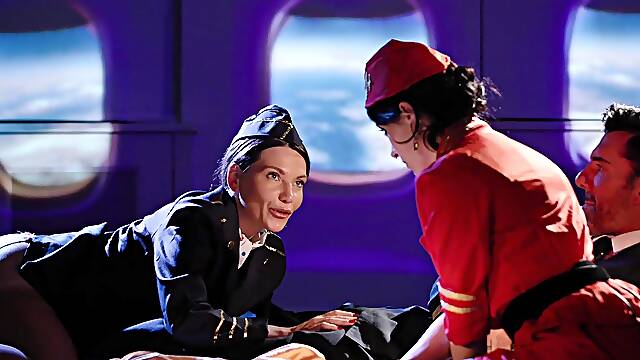 Stewardess with huge tits fucks younger captain in dirty fetishes